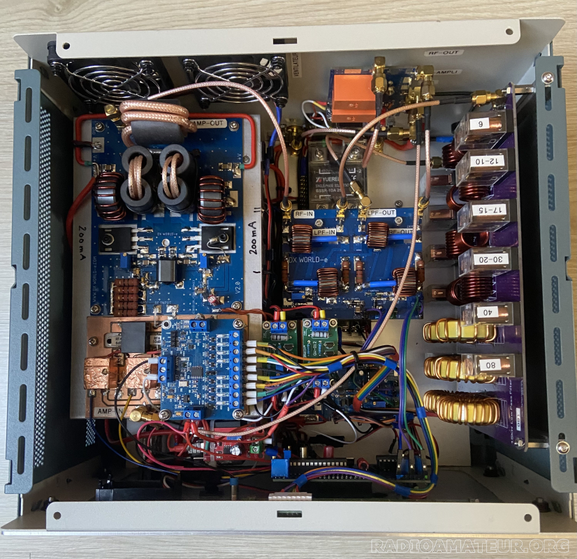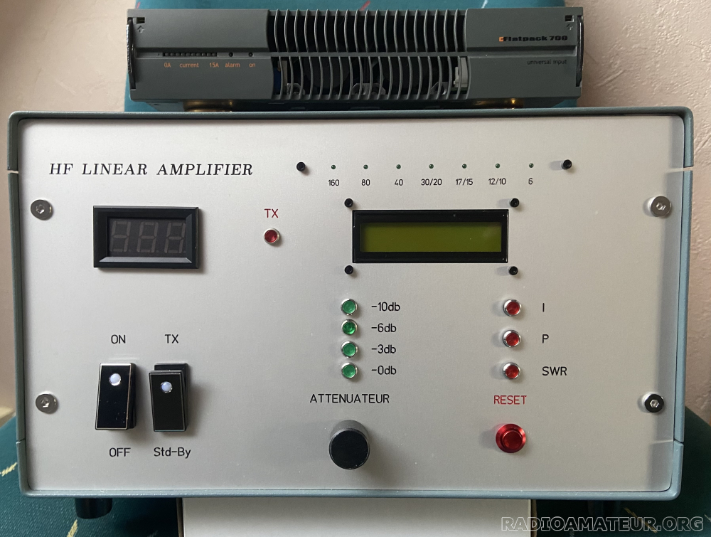 Bonjour. Je vends cet amplificateur linéaire pour bandes radio amateur que j'ai réalisé en 2025. Puissance de 500 watts avec moins de 5 watts en entrée. Réalisé avec des modules de chez DX World. Décodeur de bandes uniquement radio amateur de chez 60 dbm shop. Les MRF300 sont des originaux NXP en provenance de chez Mouser. Coffret de chez RS. Factures de ces achats. J'offre avec une alimentation 48V/16A Flatpack 700. Prix de 900€ pour le tout. Pas d'envoi. 73 QRO.