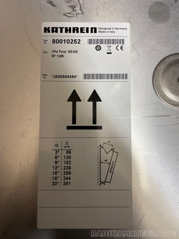 Antenne panneau KATHREIN réf : 80010252. UHF 380-500 Mhz. Polar. verticale, gain environ 12dBi, ouverture 65°. Antenne professionnelle état neuf. Antenne utilisée uniquement pour des tests/mesures/essais . A prendre sur place vu le poids et l'encombrement. Je reste à votre disposition pour tout complément d'information.
