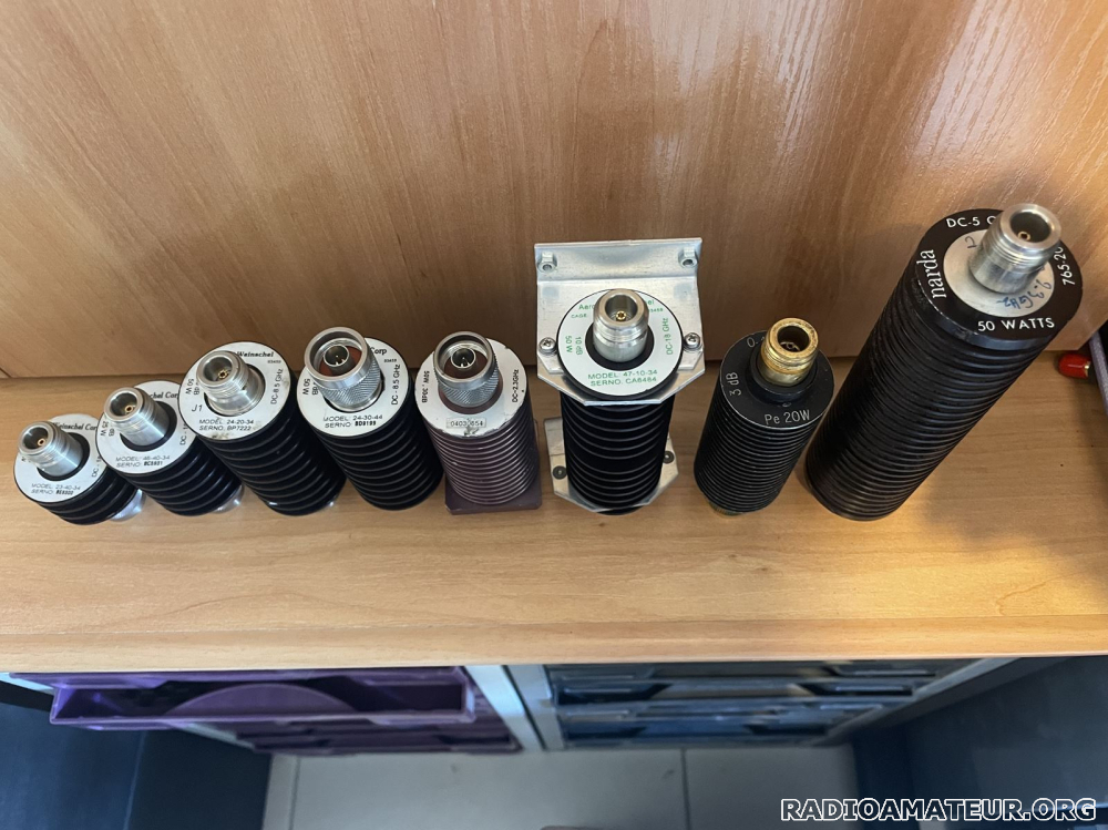 Vds différents atténuateurs de puissance RF et Hyper connectique N: - 40 dB - 10W - DC-18 GHz modèle 23-40-34 Weinschel Corp. : 130 euros - 20 dB - 50W - DC-8,5 GHz modèle 24-20-34 Weinschel Corp. : 100 euros - 30 dB - 50W - DC-8,5 GHz modèle 24-30-44 Weinschel Corp. : 100 euros - 30 dB - 50W - DC-2,3 GHz modèle KAT30O4FA0010 KMW : 80 euros - 10 dB - 50W - DC-18 GHz modèle 47-10-34 Weinschel Corp. : 180 euros - 10 dB - 50W - DC-8,5 GHz modèle 24-10-34 Weinschel Corp. : 100 euros - 3 dB - 20W - DC-4 GHz sans indication de référence et marque : 75 euros - 10 db - 12W - DC-4 GHz sans indication de référence et marque : 75 euros Possibilité enlèvement sur place ou envoi via Mondial relay