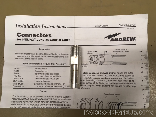 Bonjour, vends 2 kits de mise à la terre pour câble ½ pouce, référence Andrew type 204989-1, prix de vente 30 euros port 7euros, paiement de préférence via Paypal.