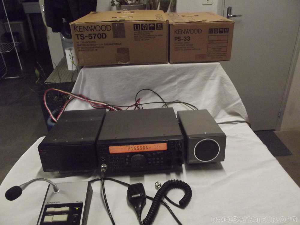 VEND Ligne complète émetteur/ récepteur HF marque : KENWOOD TS 570D ,ouvert toutes bandes, RX / TX 0,5 à 30 Mhz , avec boite d'accord automatique Filtre : DSP + Autre filtres IF SHIFT. , 2 Entrées antennes , Préampli réception /Atténuateur , VOX , Mémoires 100 canaux Mode: AM / FM / SSB / CW / FSK Puissance de sortie réglable de : 5 W à 100watts SSB/ FM , AM : de 5 W à 25 Watt / Alimentation :13.8 VDC ±15% (6-pin Molex) RX: 2 A (No signal) TX: Max 20.5 A Antenna impedance / : 50 ohm / SO-239 Dimensions: 270*96*271 mm poids : 6.8 Kg TBE d'esthétique et de fonctionnent , ligne complète KENWOOD , TX/ RX 570D +Alimentation KENWOOD PS33 ,13.8 volts +HAUT PARLEUR extérieur KENWOOD SP430 + micro main MC 43 S + MICRO DE TABLE MC 80 ( alimentation directe par le poste )+ MANUEL en FRANCAIS , livré avec carton d'origine poste + alim ,PRIX 790 euros visible pour essai sur ALBI 81000.