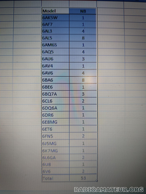 Vends lot 53 tubes d'occasion série 6xxx. Testés avec lampemètre de base Eurelec. Liste sur la photo. Envoi via mondial Relay. Paypal possible. 73'