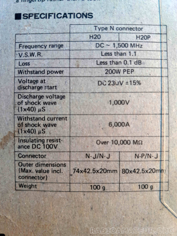 Cède parafoudre de marque Revex modèle H20 connectique N neuf dans son emballage d'origine. De préférence à prendre. Envoi possible par Mondial Relay à la charge et aux risques de l’acheteur.https://radioamateur.org/proposer-une-annonce-radio#next