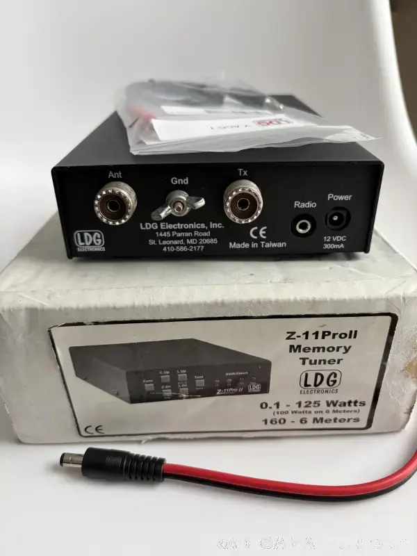Tuner aux composants démesurés vraiment US. Sortie coax OU bifilaire OU long fil. Une très bonne réalisation. Fonctionne très bien. Les afficheurs en façade onréalignt été réalignés. Une fois les accords réalisés la bande passante est large. Pour OM confirmé. Je reste à votre écoute. La photo sans cache montre bien le sérieux de la conception. Le cache est présent sur la boîte à la livraison. pas de souci.
