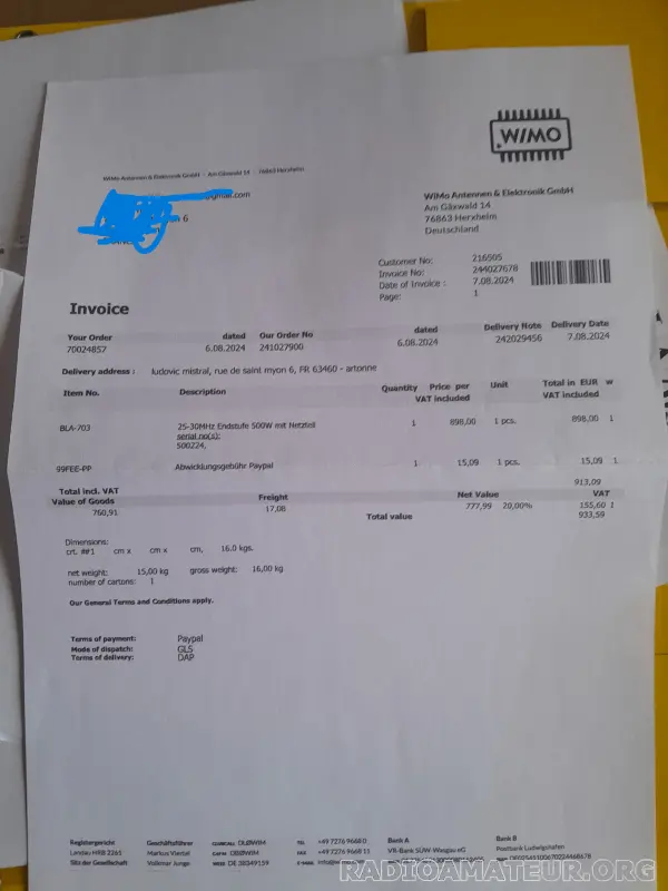 Vends récepteur HF ALINCO DX-R8E de 2021 avec kit de séparation de la façade avant (ALINCO EDS-17) et câble ALINCO ERW-7 pour la sortie I/Q (utilisation SDR avec logiciel tiers tel HD-SDR) avec facture (valeur totale 619€). Très bon état, dans son carton d'origine, avec manuel en français et en anglais. Réception tous modes (AM/USB/LSB/CW/FM) de 150 khz à 35 Mhz, 600 mémoires, Noise Blanker. Pilotable par PC avec logiciel gratuit (manuel fourni) avec gestion des mémoires. Paiement par PAYPAL et envoi par Colissimo ou Mondial Relay au choix.