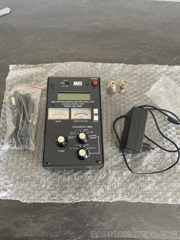 Vend analyseur d'antenne MFJ 269 c HF/VHF/UHF état proche du neuf livré avec alimentation secteur + cordon avec prise allume cigare + adaptateurs + batterie + carton d'origine envoi possible ou remise en main propre a ondexpo