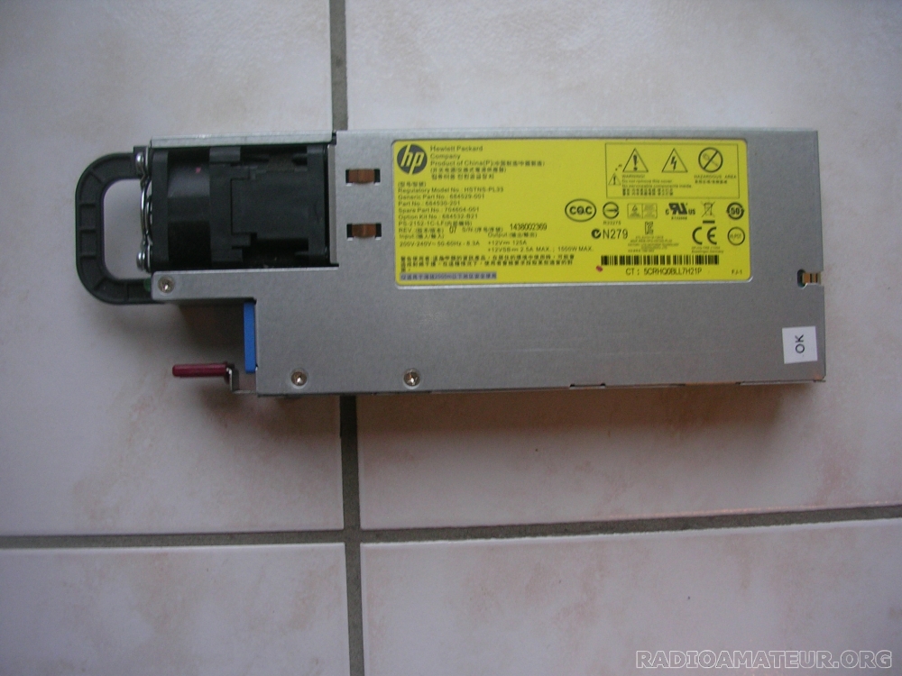 Vends bloc alimentation 12V 125A 1500W HEWLETT PACKARD référence HSTNS-PL33 - Modifiable en 13,8V voire même un peu plus (Documentation + composants fournis pour la modification) et possibilité de mise en série pour faire du 24V , du 28V ou du 48V - Dimensions hors tout : 9 x 6 x 27cm approx. - Plusieurs exemplaires disponibles - Prix : 42 Euros pièce + port ( Pour une pièce pour la France métropolitaine le tarif via Colissimo est de 13,20 Euros ou via Mondial Relay à 8,6 Euros )