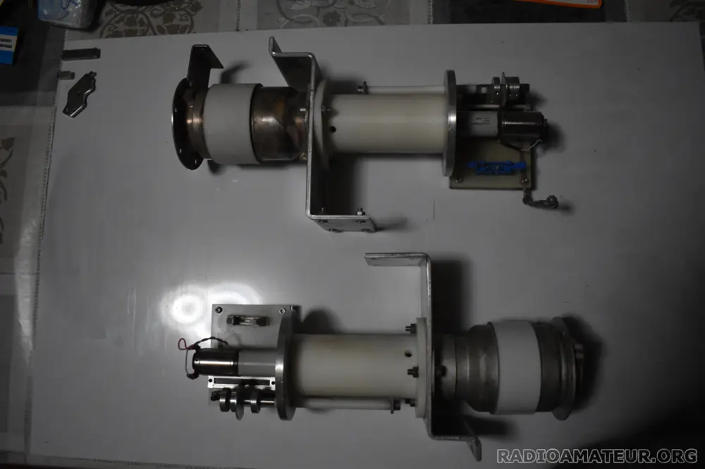 Vends deux Condensateurs variable, haute tension, sous vide, motorisé. Marque COMET valeur 10 à 1000 pF et JENNINGS valeur 7 à 1000 pF tension max 5 kV équipé début et fin de course et potentiomètre de recopie Prix : 450 € prix unitaire (à débattre) . Port en plus.
