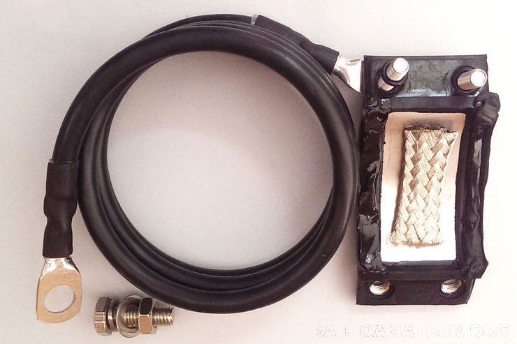 Kit de mise à la terre des câbles coaxiaux type LMR 400/RG213 Ce kit permet de protéger les installations de radiocommunication par une mise à la terre des câbles coaxiaux avant leur entrée dans la station. Le montage est simple et rapide : la gaine extérieure du câble doit être retirée sur 2.5 cm environ afin de mettre à nu le blindage ; le collier vient alors coiffer cette partie et, lors du serrage des vis, le mastic isolant s’écrase assurant ainsi l’étanchéité de l’ensemble. Le collier est ensuite raccordé à une extrémité du câble de 16mm², l’autre extrémité étant raccordée à la terre (Vis M8x25) Le kit comprend : le collier de serrage dont la face interne est composée d’une plaque métallique souple et d’une tresse de masse permettant d’assurer un contact électrique parfait avec le blindage du câble coaxial. La visserie est composée de 2 vis M6x25 en Inox Le câble de liaison d’une longueur de 30cm et équipé de cosses à chaque extrémité La vis de raccordement (M8x25 Inox) pour connexion à la terre plusieurs pièces disponible paiement paypal et envoi en locker mondial relay uniquement.