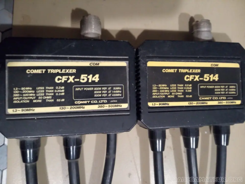 Bonjour a tous , venant d'un OM décédé , ces 2 triplexer , de la même marque donc , tous les connecteurs sont en PL ou SO , sauf 1 des 2 qui a une fiche N pour l' UHF , photos de l'intérieur disponibles , expédition possible via RELAIS COLIS , ou MONDIAL RELAY , 73 , Alain , F4JDA