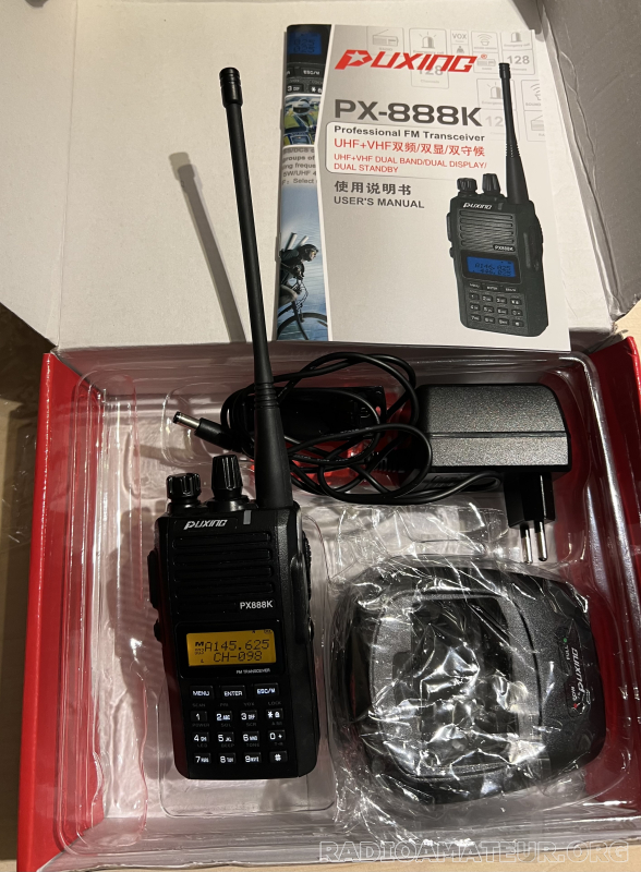 Puxing PX-888K quasi neuf avec tous ses accessoires. Programmation par PC avec cable Baofeng. Livraison par Mondial Relay
