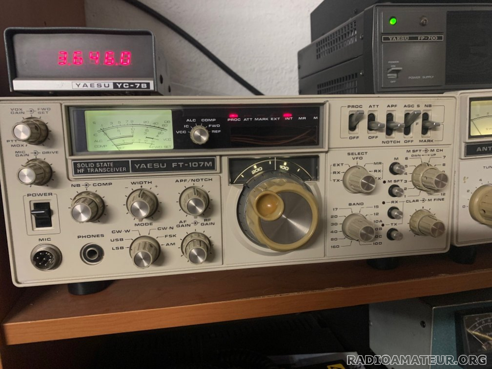 Bonjour à tous, je mets en vente mon transceiver YAESU FT-107M transistorisé couleur crème, excellent état cosmétique et de fonctionnement, toutes bandes 160 à 10 mètres avec bandes WARC 30,17,12 mètres, muni d’un compteur YC-7B. Quartz 10 mètres sur une autre bande. A prendre sur place près de Cavaillon, Vaucluse, sinon ajouter le port à définir. 73's f1gwd. Autres photos sur demande.