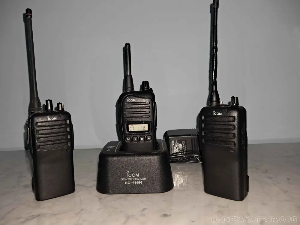 Vends cause double emploi, un lot de 3 TX-RX Icom, 1 Talkie PMR 446 ICOM IC-F4029SDR bi mode 8 canaux analogiques et canaux numériques Dpmr, 1 Talkie PMR 446 ICOM ICF25 16 canaux analogiques, 1 Talkie ICOM ICF25S 2 canaux (programmé sur relais OM 430 Mhz). Ces postes sont fournis avec leur batterie en bon état (BP232N) et 1 chargeur secteur BC119N. Possibilité de reprogrammation des Talkies, par PC, selon convenance.