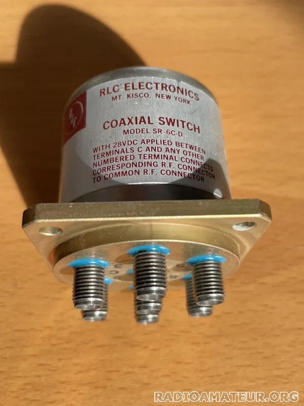 - Coaxial switch 1P6T 24-30V RLC Electronics S-4806A SMA : prix 150 euros - Coaxial switch 1P6T 28V RLC Electronics SR-6C-D SMA : prix 150 euros - Coaxial switch SPDT 26V Radiall 559403 BNC : prix 100 euros - Coaxial switch 1P6T DC-18 GHz 28V DYNATECH Q6-413J30LL SMA : Prix 150 euros - Coaxial switch SPDT DC-16,5 GHz Radiall 28V TNC R565333350 : Prix 50 euros - Coaxial switch SPDT TPI latching 28V TNC 940C30400 : Prix 50 euros - Commutateur coaxial manuel SO239 V-UHF SA-450 : Prix 40 euros