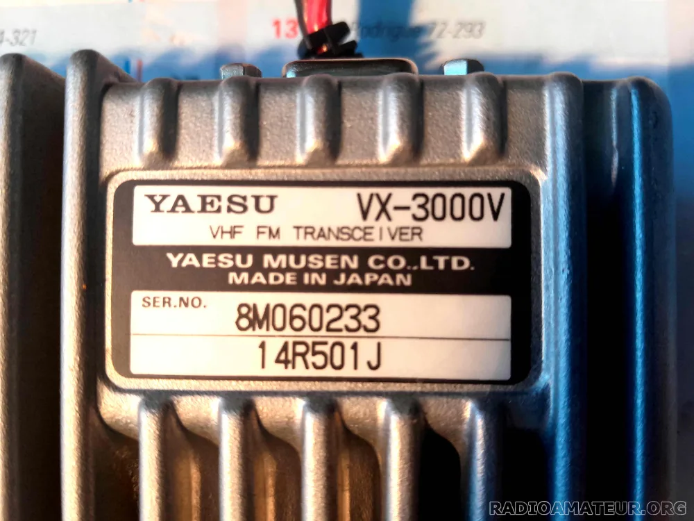 Cède transceiver Yaesu modèle VX-3000V 4 canaux, VHF 5/50W sous 13A max. Quelques fréquences programmées en 145MHz. Fourni avec micro, cordon d’alimentation avec fusible et logiciel CE-19 pour la programmation des fréquences, CTCSS, etc (interface non fournie mais disponible sur Ebay). Solide construction Made in Japan. Caractéristiques disponibles sur le net. A prendre sur place après essais. Expédition possible par Mondial Relay