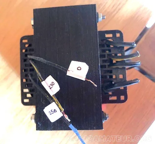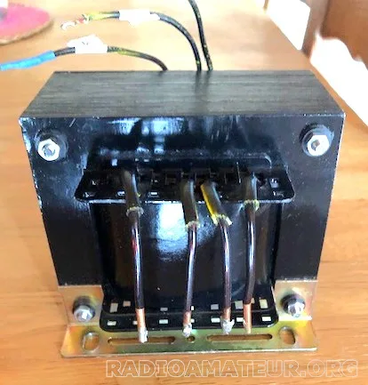 Vds transformateur neuf 10 Volts 30 Ampères point milieu pour chauffage filaments tube QRO. Le transfo a été calculé et bobiné par un professionnel en fonction de sa destination qui était le chauffage filaments de deux tubes QB4-1100 soit: 5 volts/14,1 ampères par tube ce qui fait 28,2 ampères pour les deux tubes d'où une marge de sécurité de 30-28,2 = 1,8 ampère