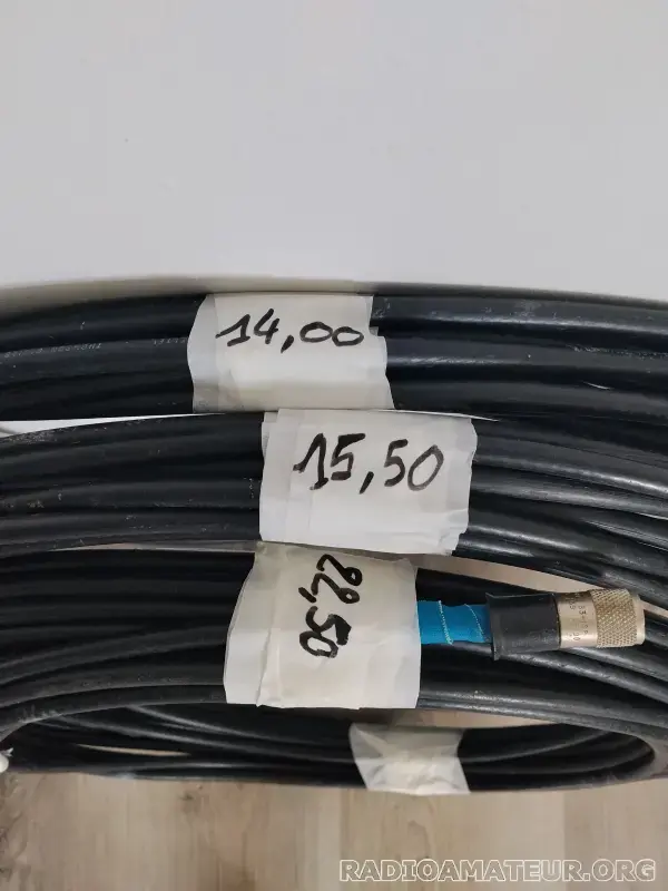 3 bobines rg 213 avec pl/pl de chaque côté. 22,50/ 15,50/ 14m. Envoi rapide possible merci. Prix pour l'ensembles.