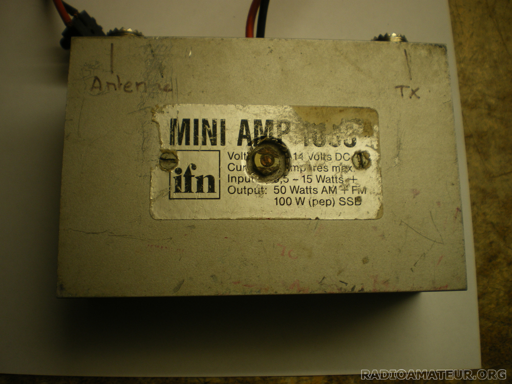 Petit amplificateur HF IFN MINI AMP 1050 pour 26 à 30 MHz d'une puissance de 50W AM/FM/SSB idéal pour booster un poste CB de 4 à 12W. J'y ajoute un filtre passe bas de 30 MHz pour suppression des Harmoniques indésirables. Livrable à Hamexpo ou envoi Mondial Relay Port de 4€