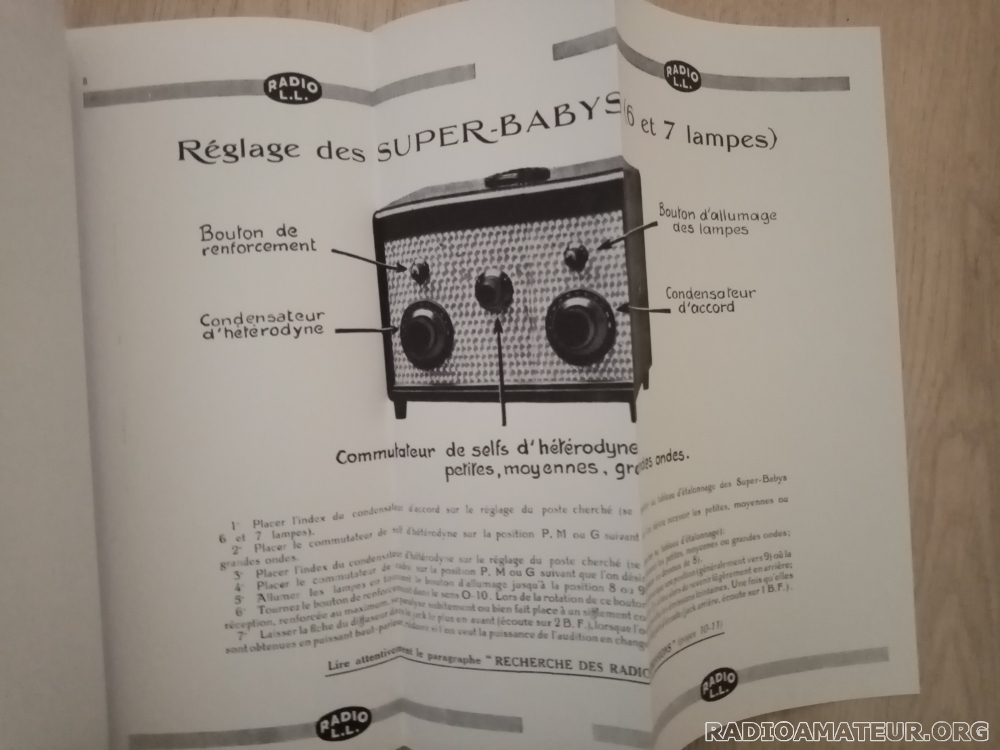 Fac-similé d'une brochure éditée par les Établissements Radio-L.L. "Brochure explicative dont les indications permettront, à n'imoorte quelle personne, même non initiée à la T.S.F. de monter rapidement et régler avec facilité un Super-Baby à 5, 6 ou 7 lampes." Brevets Lucien Lévy 16 pages Format 21x29,7 Envoi par la Poste, Mondial Relay ou Shop2Shop. Remise en main propre sur Paris 13e (Olympiades).