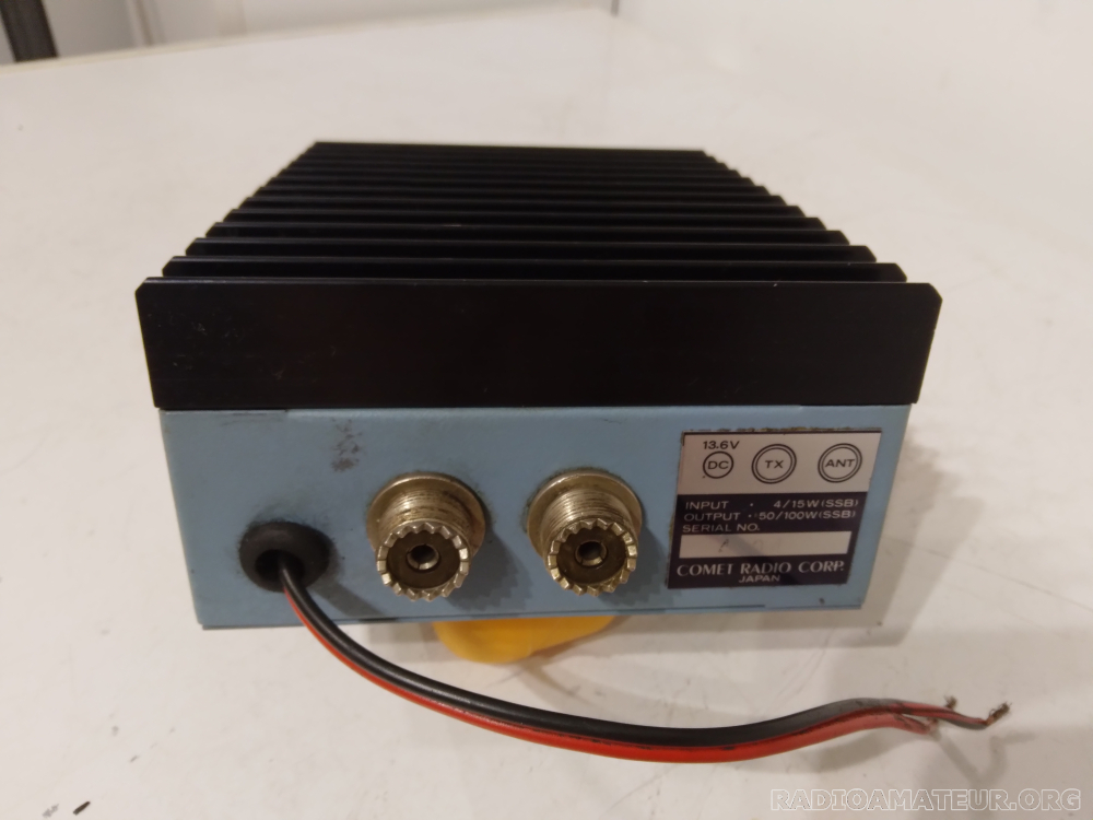 Très beau petit ampli de 100 watts, en excellent état de présentation et de fonctionnement, particulièrement compact et de bonne qualité, dimensions réduites: 12,5cm x 15cm x 6,5cm et le poids est de 1064 grammes. Le test de puissance est de 80 watts de sortie pour 3 watts en entrée, il est 100% d'origine, jamais bricolé, jamais tombé en panne, parfaitement linéaire, il a la particularité d'avoir un filtre passe bas intégré de grande qualité (selfs argentées), il possède aussi un préampli de réception très performant (rapport signal sur bruit excellent) , il possède aussi deux atténuateurs et une position SSB performante permettant d'avoir une souplesse intéressante du VOX HF. Joli petit ampli de 100 watts, compact et de qualité professionnelle (mieux que le B300P Zetagi). Signal très propre et linéaire en sortie. Parfait pour mettre derrière une petite CB QRP. Prix 128 euros
