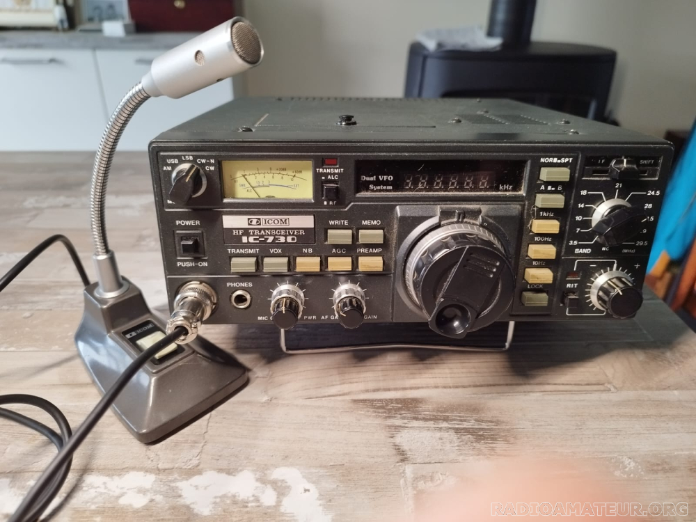 IC-730 Poste HF du 80m au 10m, modes AM / FM / CW / SSB, 100W HF, Bon état (léger faux contact prise HP ext.), bon état esthétique, livré avec un micro de table SM-5 (recherché) + câble d'alimentation. Ne peut pas être utilisé pour le 27MHz. Notice disponible sur internet. A prendre sur place (nord département 89) ou au salon HAMExpo le 18 octobre 2025 - 73.