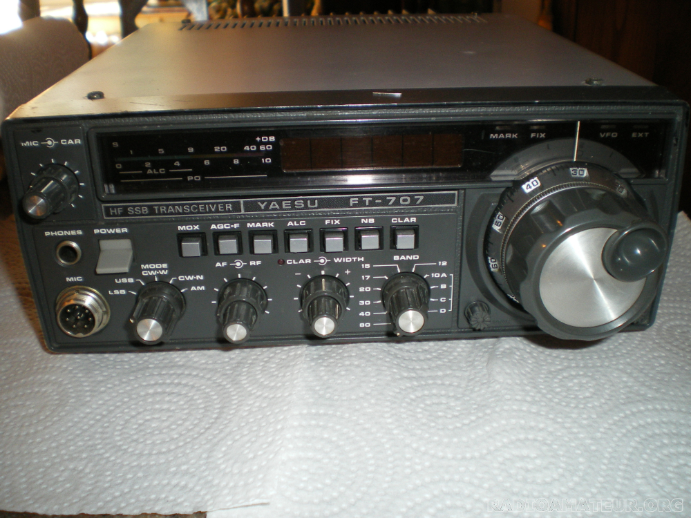 Transceiver HF Yaesu FT-707 en bon état de présentation et de fonctionnement E/R + Bande haute de 26 à 28MHz Avec cordon d'alimentation et microphone. Paiement paypal préféré, envoi Mondial Relay. Mieux: livraison possible au salon HAMEXPO le 18 octobre prochain.