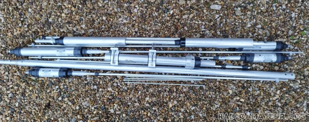 Vente pour la famille Labordes, Michel F1FIH(SK). Pylône télescopique basculant composé de 2 éléments télescopiques de 6 m avec treuil manuel a la base, l'ensemble est basculant a la base,la chaise n'est pas disponible,le pylône est déposé au sol. 1 flèche triangulaire de 4 m basculante en point haut faisant office de cage rotor a double palier superposés, 1 tube galvanisé de 2" de 3,5 m de long pour support d'antennes avec un amortisseur de couple élastomère emmanché en bout du tube coté rotor,l'ensemble pylône est proposé a 700 euros. Transport a la charge de l'acheteur , l'ensemble pèse 450 kg environs , entièrement démontable comme suit : 2 éléments de 6 m et 1 élément de 4 m 73's
